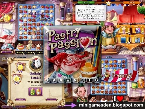 Help Henri, a high-spirited baker with a penchant for pastries, arrange scrumptious ingredients into groups of three or more to make colorful confections. Boost your bakery with helpful tools and rise to the rank of Master Pastry Chef in level after level of mouth-watering matching fun! Featuring two original game modes, special in-game trophies, and rich full-screen graphics, Pastry Passion is a delightful indulgence for your mind!