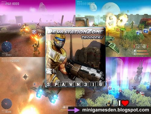 You are a Devastation Zone Trooper and one of the Blue Star Alliance’s toughest…hardened in combat and trained for action! During a space border patrol, you receive a code red distress call. The Rakkai Empire is invading the planet! As one of only a few highly skilled survivors, you must use overwhelming firepower and all of your combat skills to battle the hordes of hostile ground troops! Fight through more than 50 levels of intense action and use your arsenal of weapons to destroy everything in sight!