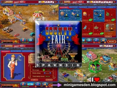 You are in charge of running your local county fair. What will you do first? Install the biggest, most fabulous rides? Set up tasty food concessions to sell deep fried soda and other delicacies? Fire the staff and assemble your dream team of carnies? Now is your chance to give it whirl! County Fair combines the best of two hot game genres as you set prices, hire staff and select the hottest new rides and attractions while keeping your customers safe, healthy and coming back for more!
