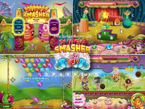 Prepare yourself for the ride of your life in Super Smashers, a fast-paced game with funny characters and hilarious attractions! Play pranks on the visitors of the Super Smashers amusement park by shooting down their balloons and throwing cakes in their faces to get a hold of their special attraction tickets. Put on your boxing gloves and punch the funny circus clowns in this fun Action & Arcade game!