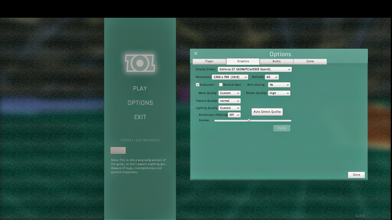 | New menu graphics with options window |
