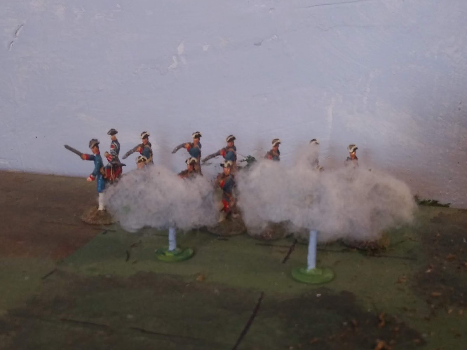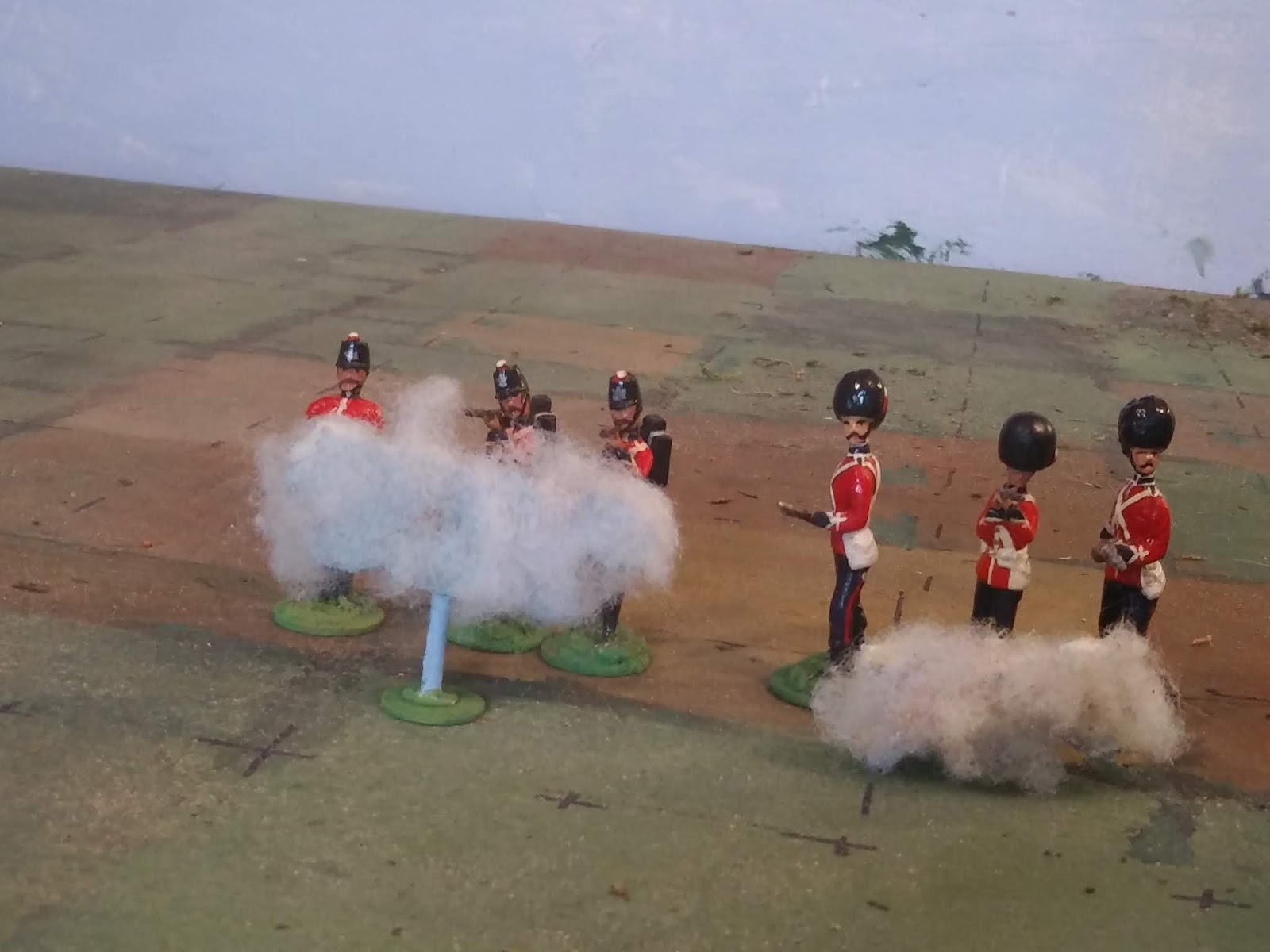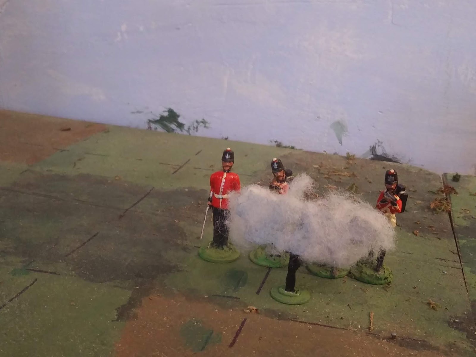 After various internal debates about things like hiding the post in a bush, I’ve decided to paint it sky coloured though you have to put your eye at table level and look towards a backdrop to get the full effect. When looking down from a standing position, the post isn’t terribly noticeable on a crowded battlefield anyway.