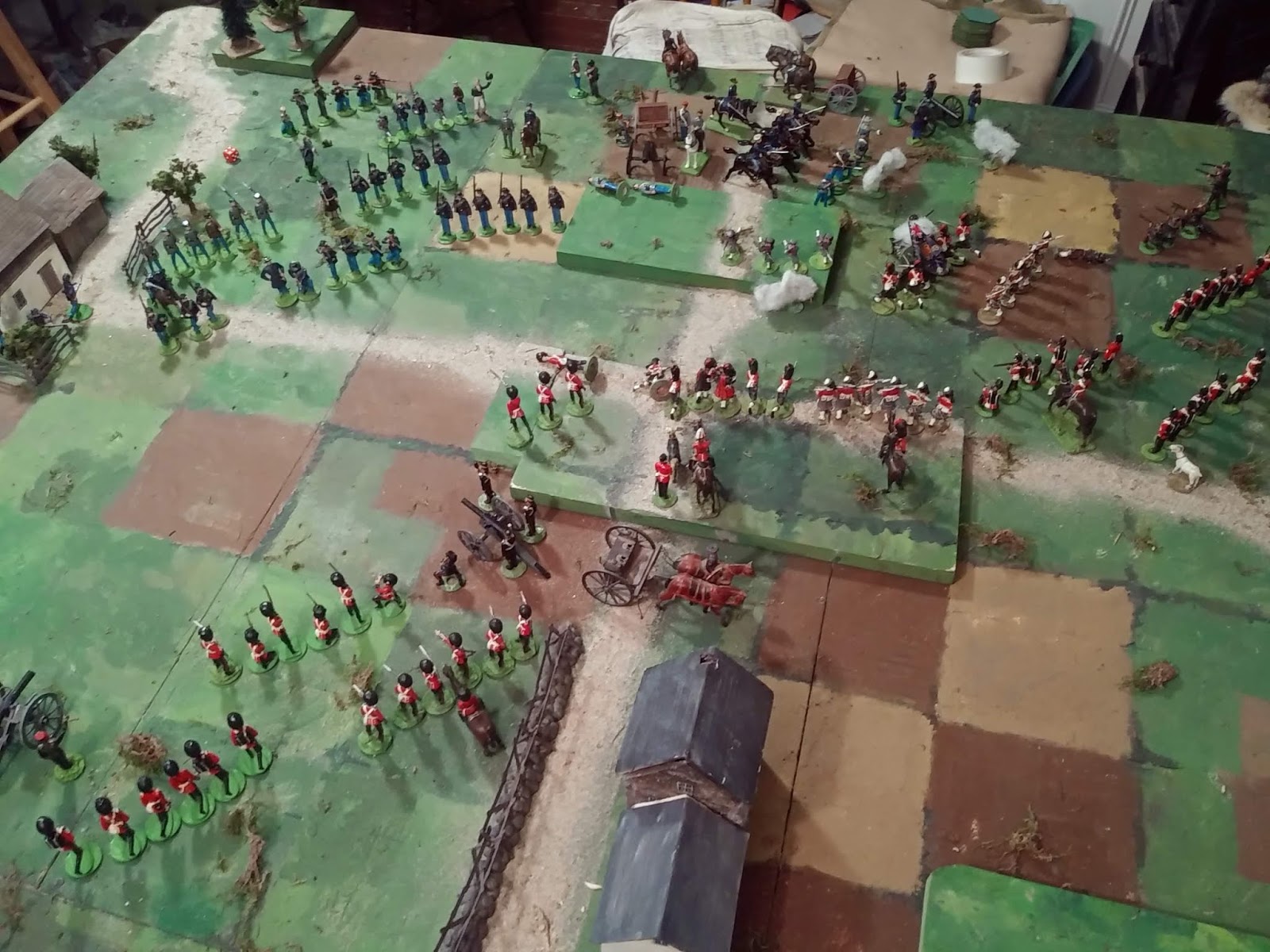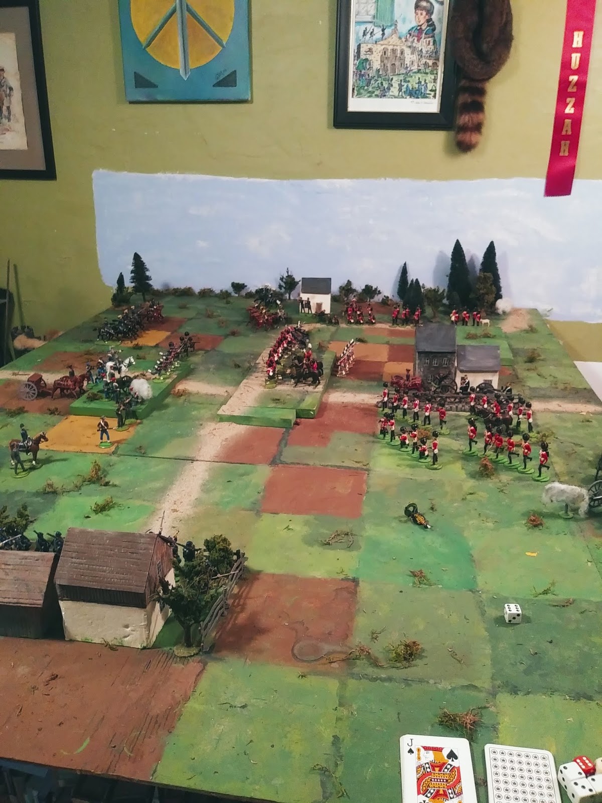 I had been having some fun experimenting with using a 3″ grid for measuring only and with playing around with 2 grid units but in the end, based on the current size of the incomplete armies, I decided to just go with the 6″ grid with a unit per grid square except in cases of massed battalions where 2 units could be in a square and artillery which takes two adjacent squares, one for the gun and one for the limbers, caissons and so forth.