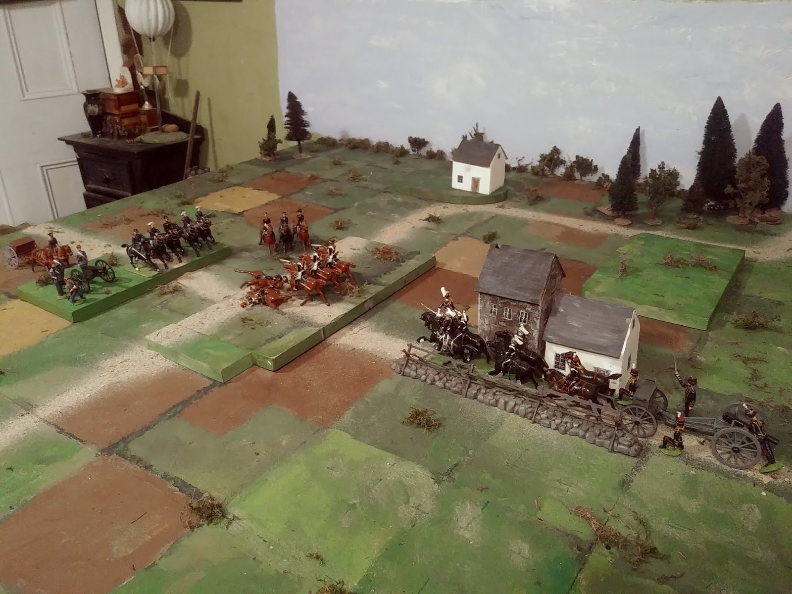 Both armies were composed of one cavalry and three infantry brigades supported by two batteries. The cavalry brigades were only two squadrons while the infantry brigades were composed of four ‘companies’ of infantry drawn from 2,3 or 4 regiments. (Please note that the organization is not meant to be taken literally but allows me to identify units by name based on uniforms and to mix and match them within the next highest organizational level. Gamewise, a unit is a unit and any group of units with a Commander is a Brigade under the rules.)