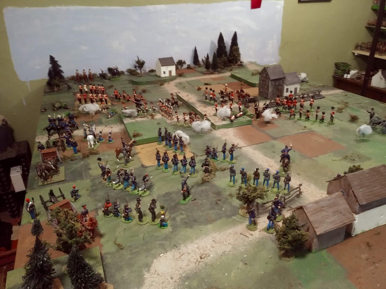 | With the Dominion’s redcoats in possession of the hill astride the main road and 3 of their 4 brigades down to 1/2 strength, The Rebels are forced to retreat, |