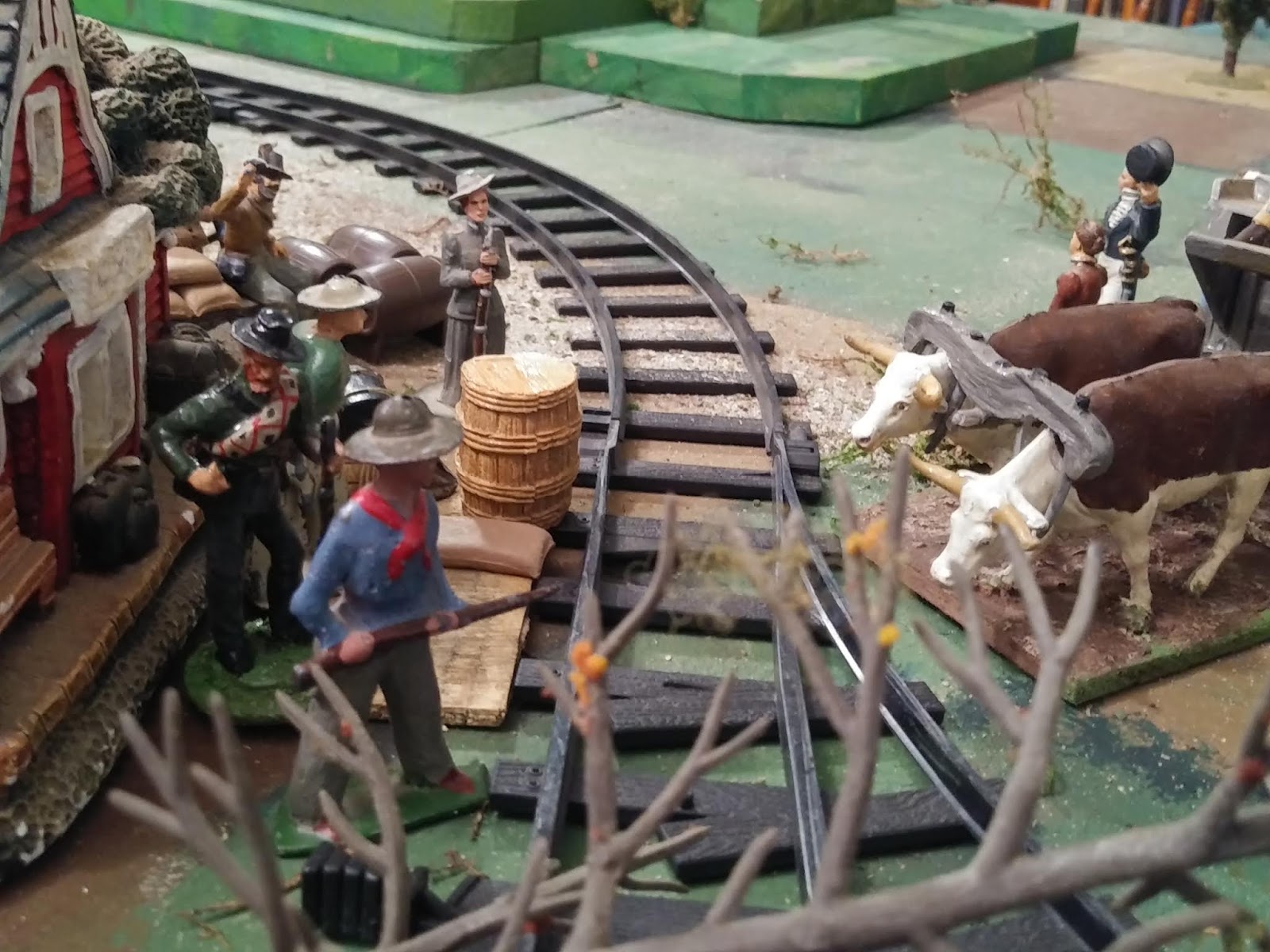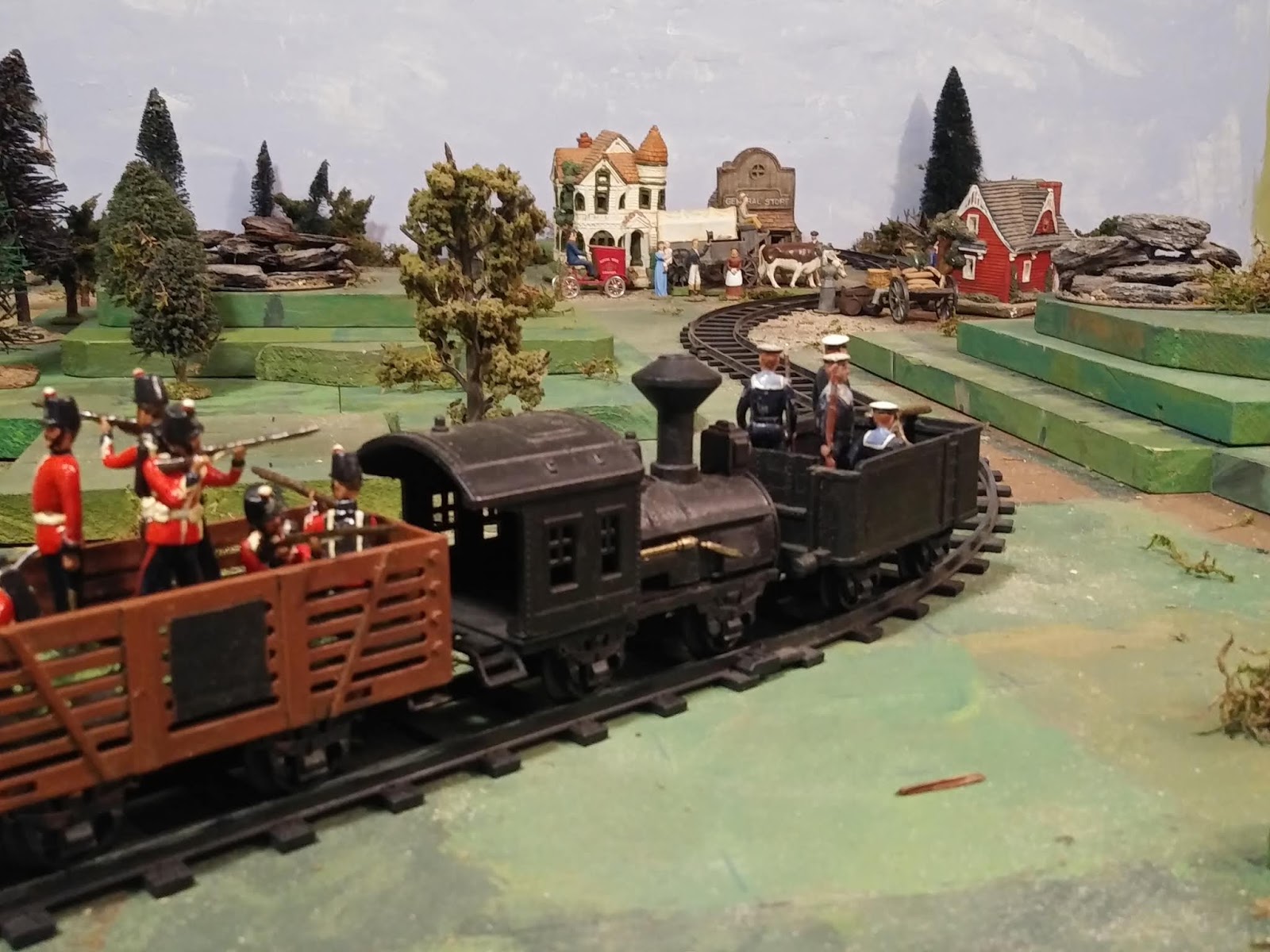 | As they approached Little Junction in the Blue River District, a crowd was seen to be gathered around the station. A Dominion Day celebration? Perhaps they were gathering to cheer the troop train as it passed? Well, why not? The Blue River Rebellion <link> was long past and the area is now part of the Dominion with representatives in parliament. There is no reason to suspect that these troubles in the Origawn and the North West have stirred old causes. Is there? |