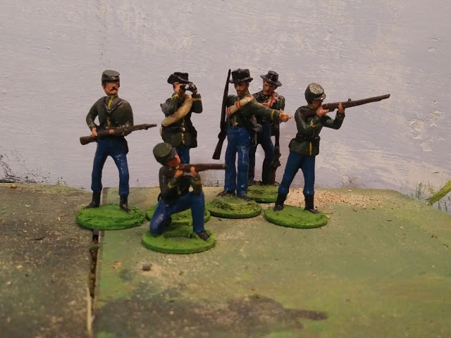 There are two survivors of the original Fenian company raised some 20 years ago (the nco and the chap loading) but with an issues of fancy new green coats and natty blue trousers for new recruit and old veteran alike the unit is now ready to take the field at the first opportunity.