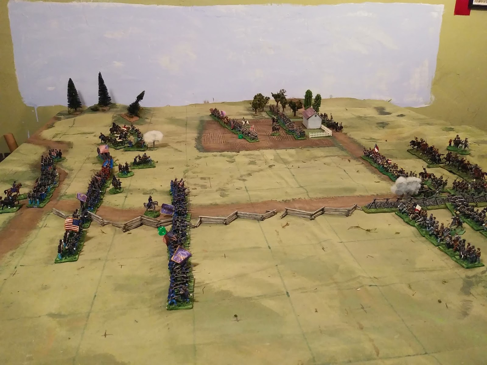 This time I played 15 turns in about 3 hours and was able to declare a narrow Confederate minor victory. More than that, the advantage had swung back and forth but in the end it was player decisions not dice that decided the issue. (Mind you a last desperate Yankee charge might have come off against the odds if the dice had been kinder to them and turned the game to a draw.)