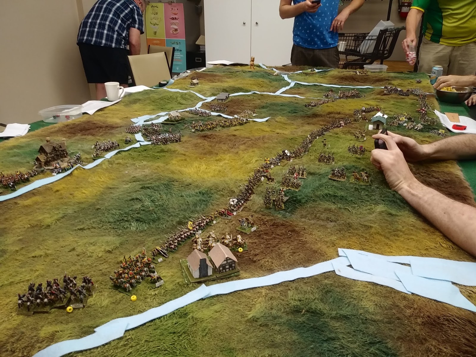 | I played Dokhturov on the left, so this was my command. Lets just say that 5 hours later I was still holding our left. Jeff’s terrain and armies. |