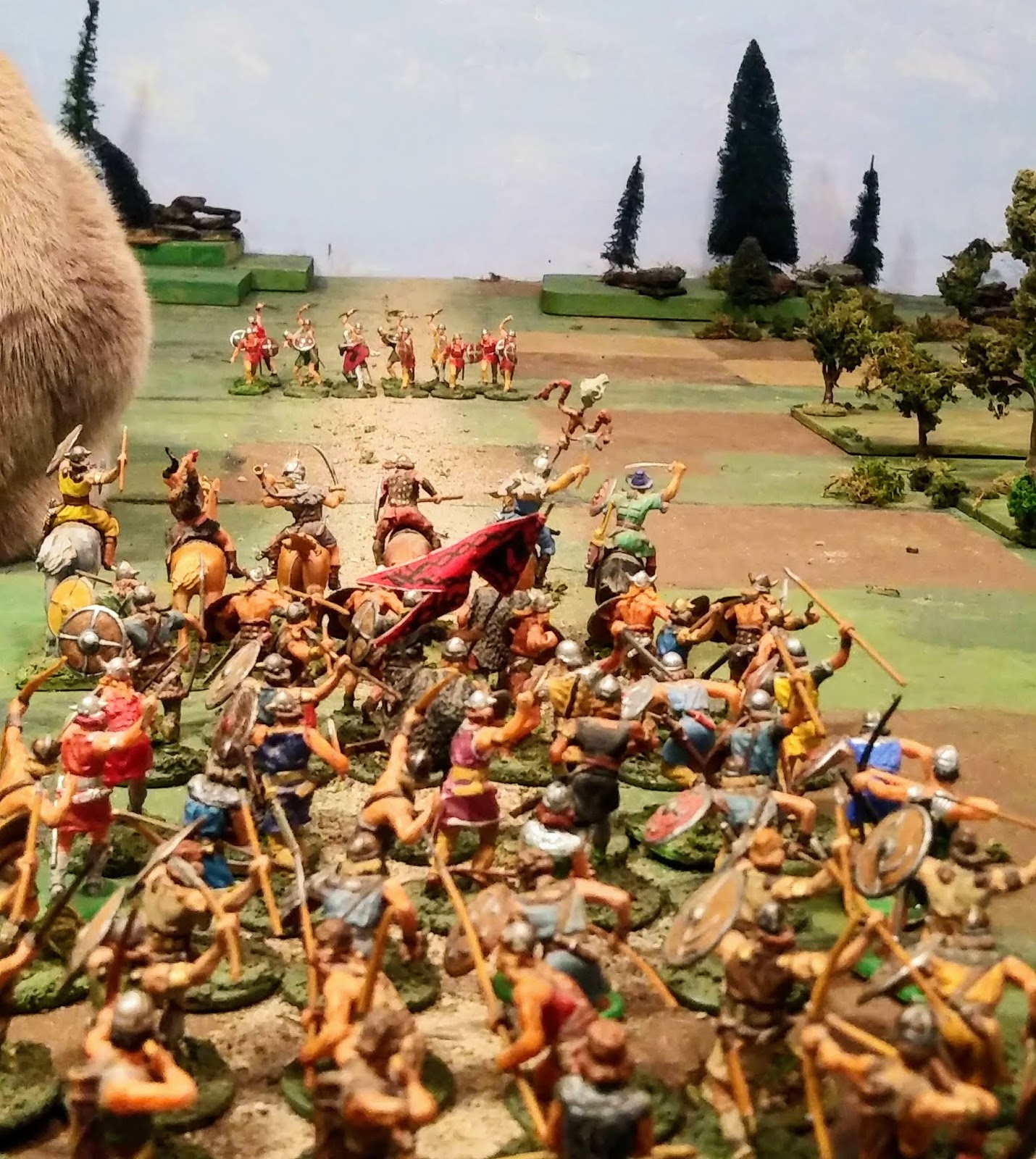 After several ho’s and hum’s I settled on my Elastolins and the Age of Arthur and scenario 13, “Escape”, from Thomas’s One Hour wargames.