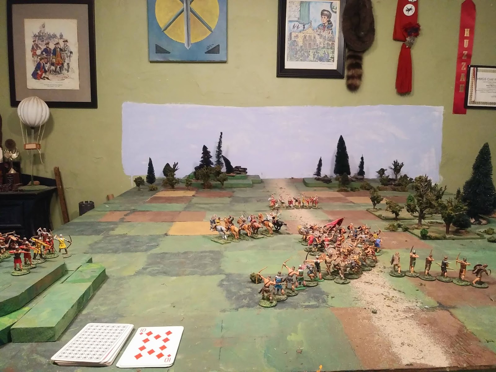 | OK, so now that Minnow has left, we can see the whole table. Reinforcements from the wall have just arrived on one flank! Where is Duke Stephen and his knights? |