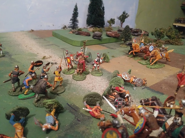 The Romano-British had Duke Stephen with his Elite Armoured knights, a unit of garrison light cavalry, Tribune Johan with a unit of armoured infantry, 2 units of infantry and one of archers. Earl Helgin Dearg Mor, the Pictish king, Duke Stephen and Tribune Johan were all rated as commanders.
