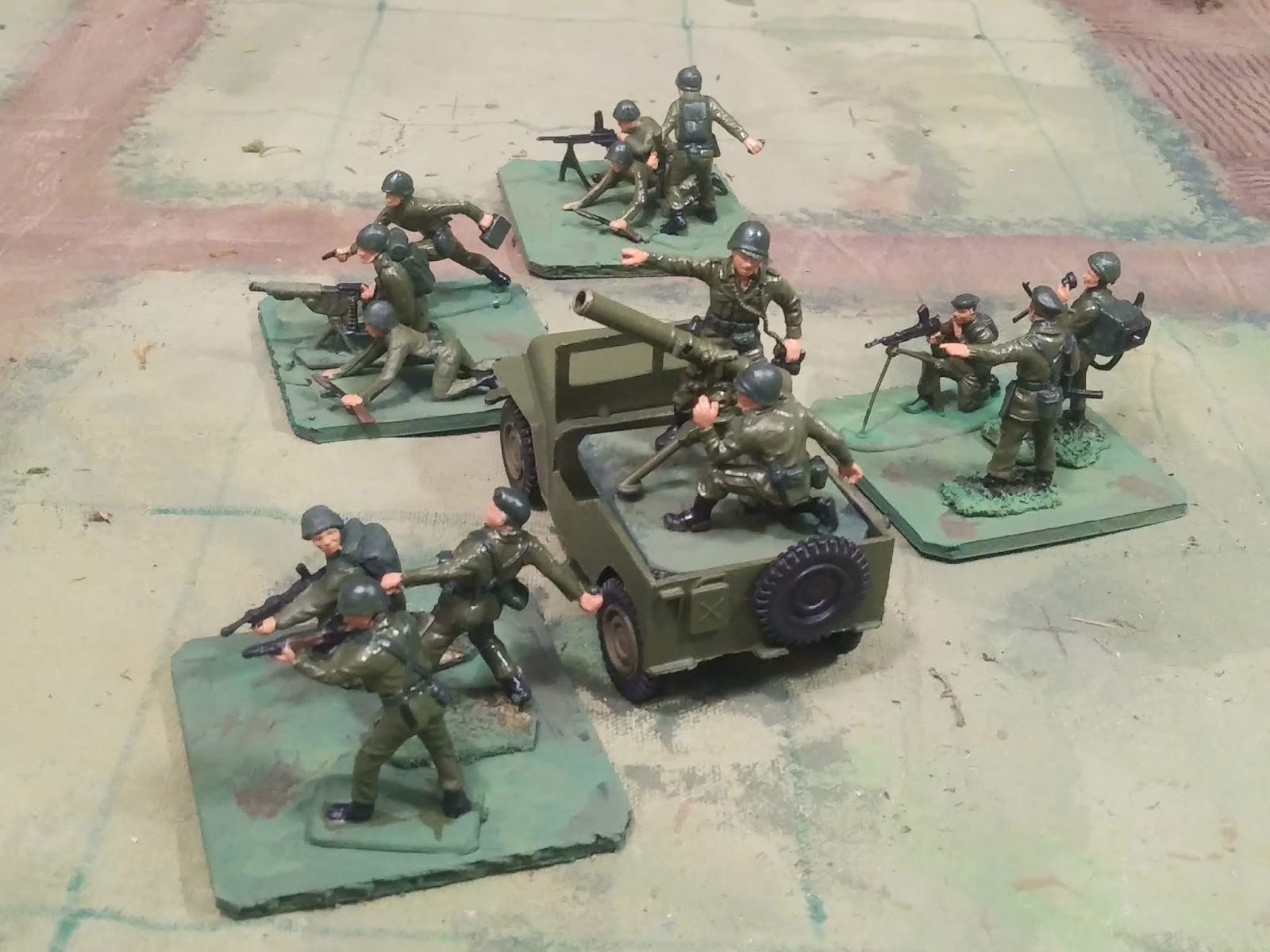 2. Unit types. Given the toy soldier element of these armies, I am going to do a short capabilty chart for only the units that I will field and some of those units may have slightly different capabilities such as longer ranges for a generic artillery battery than its appearance might suggest. As an example I am thinking about taking the “Heavy” infantry idea from OGW to make a reinforced infantry company to replace straight MG units.