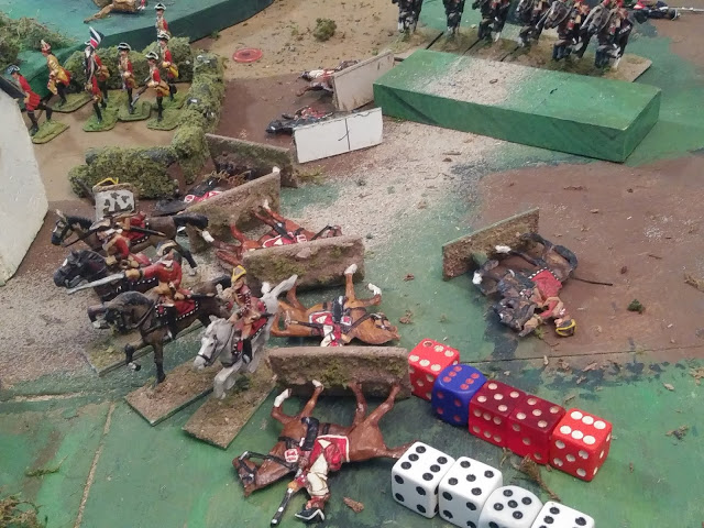 On the farside of the island the Maritime infantry cleared the villagers from their fields at the point of the bayonet while the cavalry advanced with swords drawn. With a sharp “Huzzah!” they charged and moments later the Carabiniers had been scattered to the wind and the village was taken with hardly any losses. The road forward was open!
