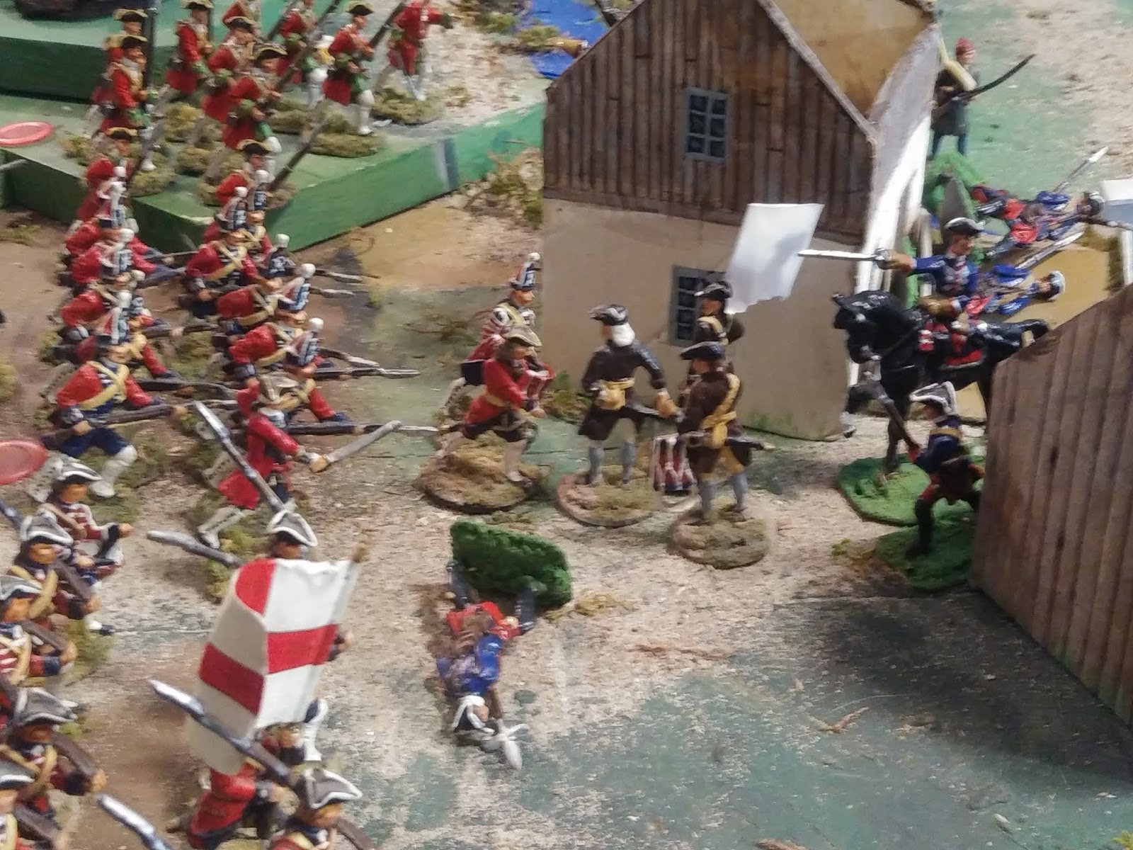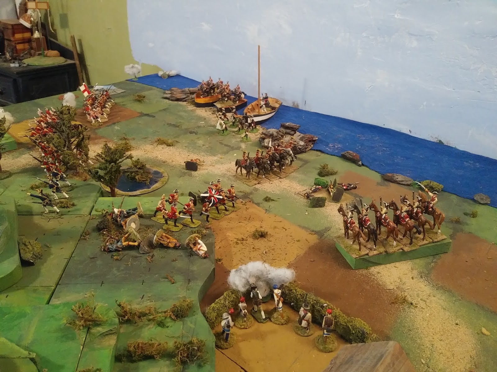 On the farside of the island the Maritime infantry cleared the villagers from their fields at the point of the bayonet while the cavalry advanced with swords drawn. With a sharp “Huzzah!” they charged and moments later the Carabiniers had been scattered to the wind and the village was taken with hardly any losses. The road forward was open!