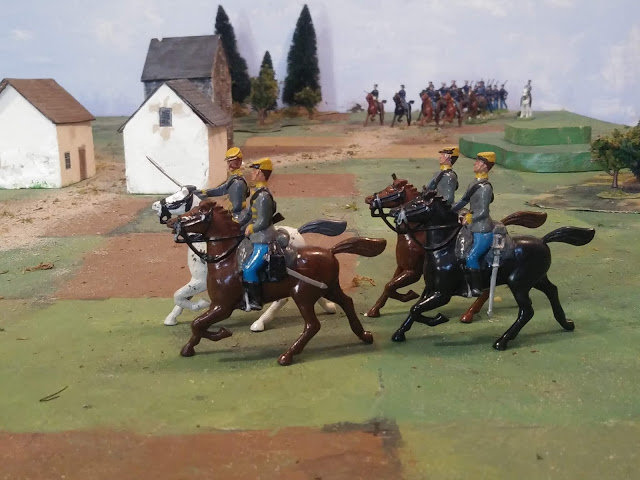 Morale is dead simple, again as in Charge!, both units and armies fight on till below 1/2 strength then go home. That left me at a loss for what to do with the Elite infantry unit Red has so I gave them 2 extra figures which not only increase their fighting power slightly but also allow them to take 1 extra hit. The heavier cavalry types are slower without any compensating benefit so I am going to award a +1 vs lighter cavalry in melee.