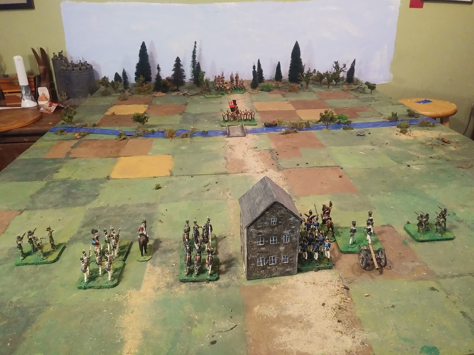 | A OHW scenario test game which was enjoyable but too fast and virtually unwinnable for Blue given the mix of terrain and short ranges in the draft rules. |