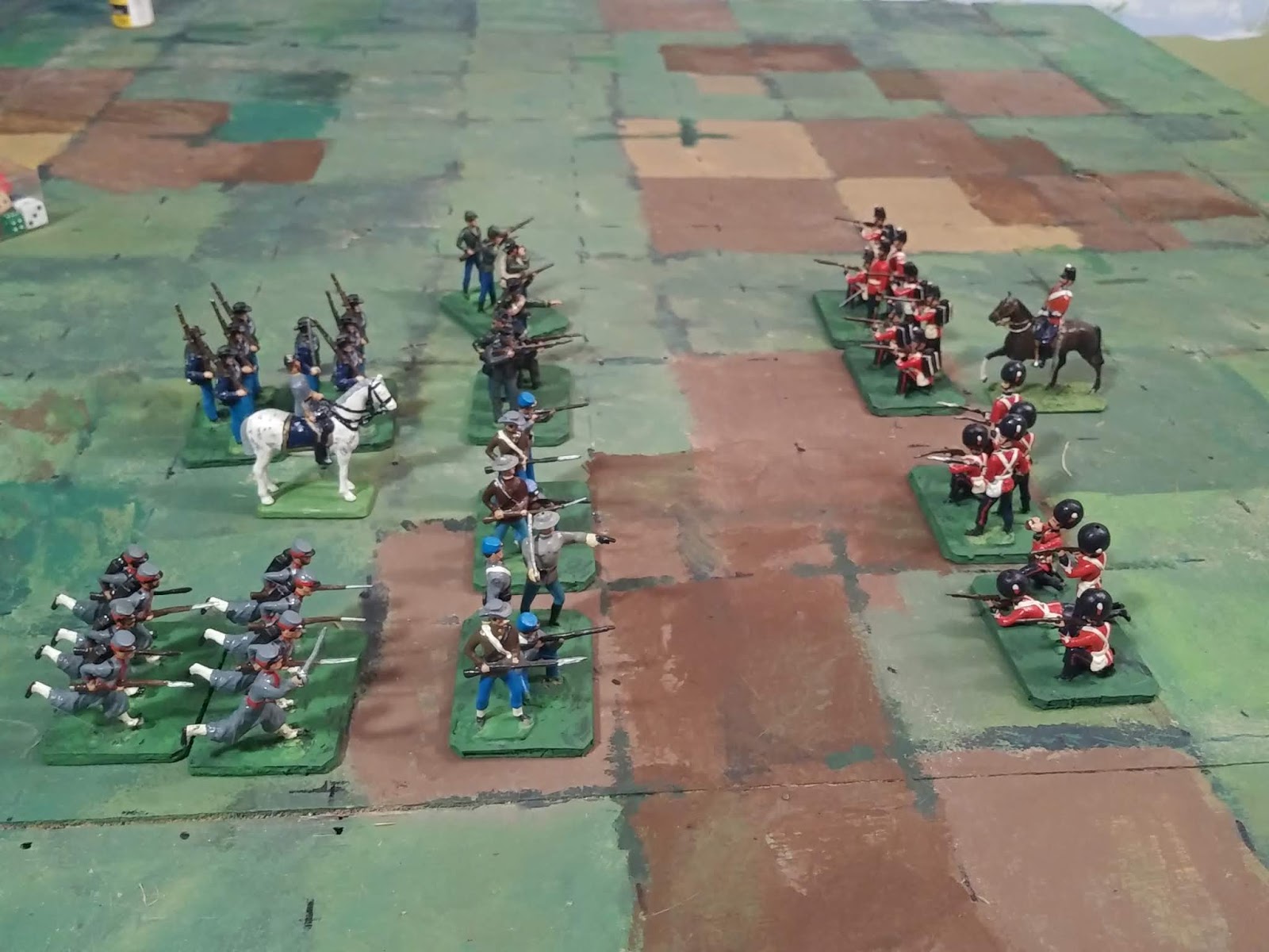 | The Rebel brigade has two units deployed (representing a typical 1870’s heavy skirmish line with supports with 2 units formed in column in support. |